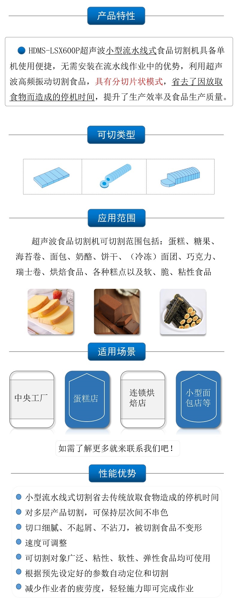 該設(shè)備配備雙把超聲波刀片,既可切方蛋糕,也可同時切兩個圓蛋糕,效率更高