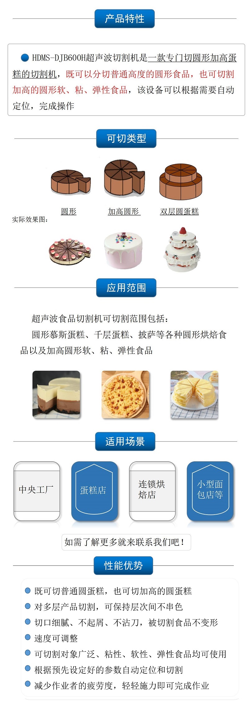 該設備配備單把超聲波刀片,可切圓形(只限一個圓蛋糕),也可切方形 |